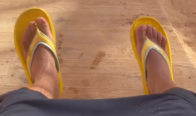 و أسامة بثقة أكبر، كان يجلس و يهز قدميه بالنعال الأصفر و البرمودا الذي كان يرتديه، ليكون كل التركيز على النعال الأصفر 🦶🦶.